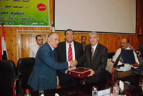 وفى نهاية الحفل تم اهداء درع الكلية لسيادة المحافظ تقديرا له .