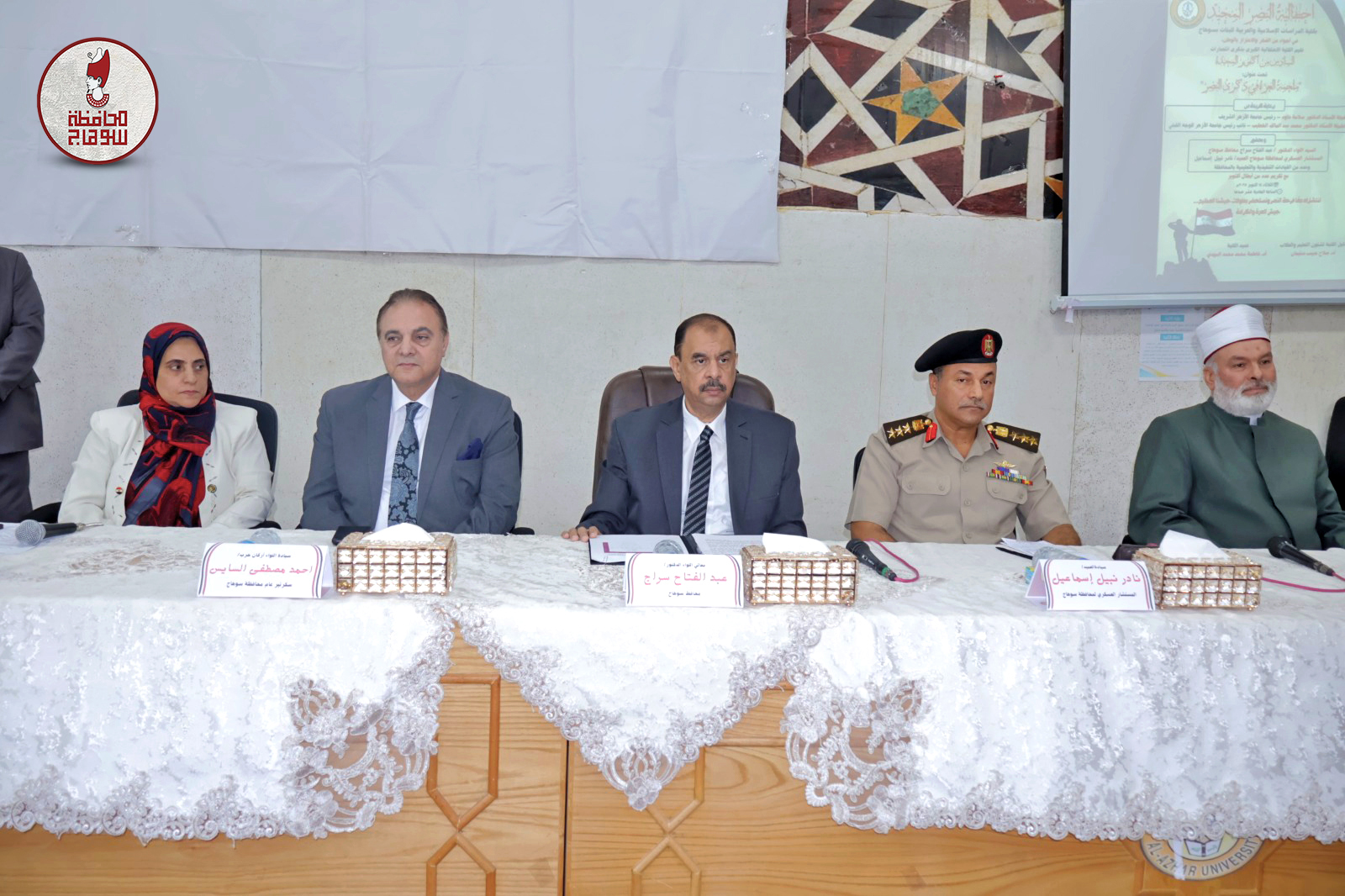 شهد اللواء دكتور عبد الفتاح سراج محافظ سوهاج، اليوم، احتفالية كلية الدراسات الإسلامية والعربية للبنات بجامعة الأزهر الشريف، بذكرى انتصارات أكتوبر المجيدة، بحضور اللواء أ.ح أحمد السايس سكرتير عام المحافظة، والعميد أ.ح نادر نبيل المستشار العسكري للمحافظة، والدكتور محمد حسني رئيس منطقة سوهاج الأزهرية، والدكتورة فاطمة مهدي عميدة كلية الدراسات الإسلامية والعربية للبنات بسوهاج، ولفيف من أعضاء هيئة التدريس، والقيادات الدينية والتنفيذية، وطالبات الكلية.