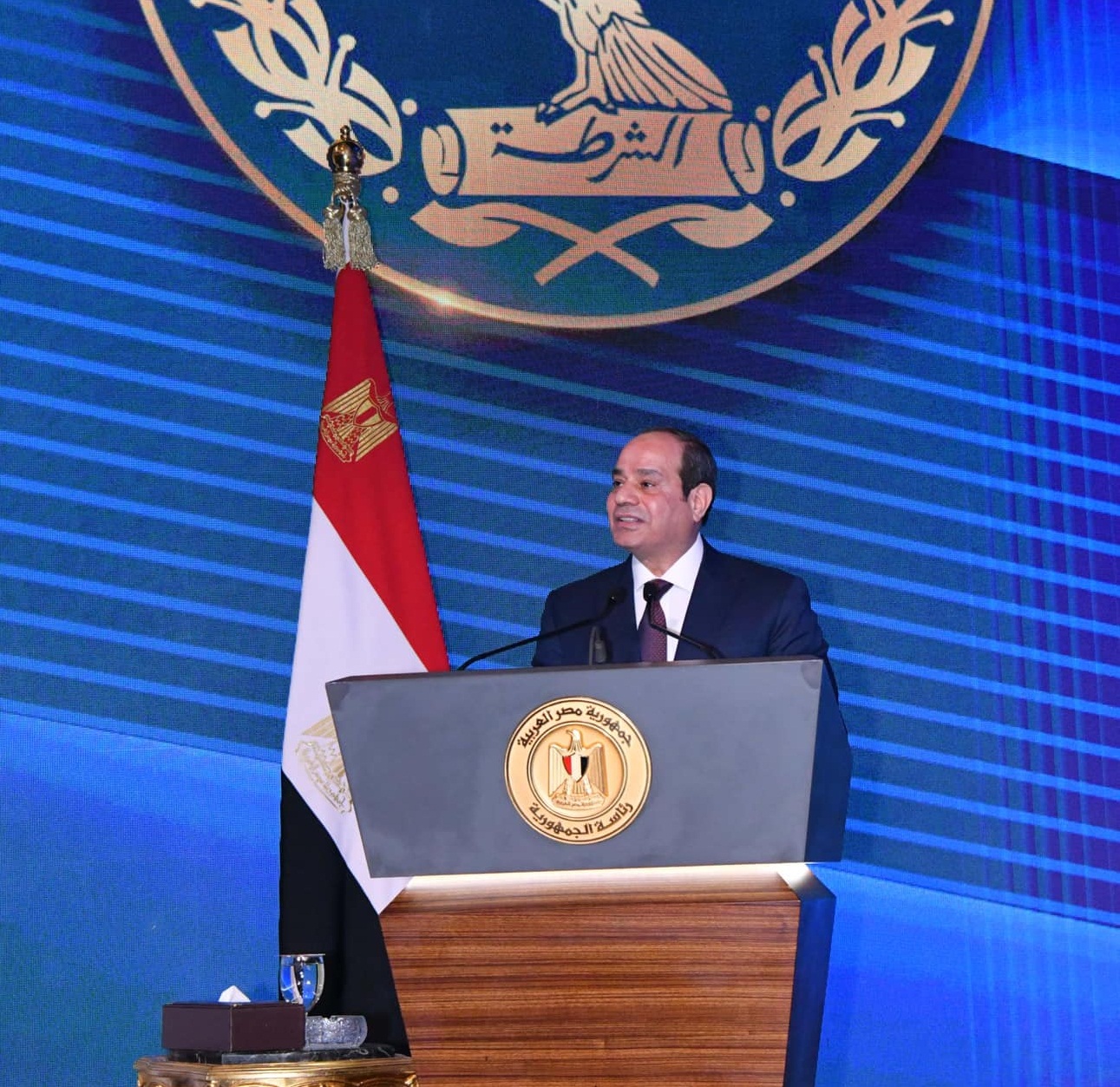 وجاء فيها " بالأصالة عن نفسي وبالإنابة عن أبناء محافظة سوهاج، يسعدني أن أبعث لسيـادتكم بخـالص التهاني القلبية، وأطيب التمنيات بمنـاسبة عيد الشرطة، أعاده الله على سيادتكم وعلى الشعب المصري بالخير والبركات، إذ تمثل هذه المناسبة ذكرى تضحيات رجال الأمن، فإنها ستظل شاهدة على تلاحم جميع أبناء الشعب للوقوف ضد أي اعتداء على مقدرات الوطن، وإذ ننتهز هذه المناسبة لنهنئ سيادتكم زعيما وقائدًا للدولة المصرية يجسد طموح شعبها ويحفظ استقرارها ويرسخ مكانتها بين الدول.