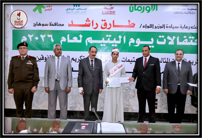 شهد اللواء طارق راشد محافظ سوهاج، اليوم، فعاليات احتفالية "يوم اليتيم لعام 2026"، والتي نظمتها جمعية الأورمان بقاعة المؤتمرات الكبرى بديوان عام المحافظة، وذلك في إطار احتفالات المحافظة بعيدها القومي ويوم اليتيم، وقد شهد الاحتفالية كل من " السيد كمال سليمان نائب المحافظ، واللواء أ.ح أحمد السايس سكرتير عام المحافظة، والعميد أ.ح وائل أبو القاسم المستشار العسكري، والدكتور ياسر بخيت وكيل وزارة التضامن الاجتماعي، وعلي إبراهيم مدير جمعية الأورمان بسوهاج، ولفيف من المكرمين وذويهم وأسرهم .