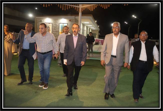 رافق المحافظ خلال الجولة كل من السيد كمال سليمان نائب المحافظ، واللواء أ.ح أحمد السايس سكرتير عام، والدكتور محمد حلمي السكرتير العام المساعد ، وعلاء شعراوي رئيس حي غرب، وتاج أبو سداح رئيس حي شرق.