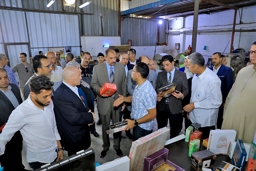 واستهل المحافظ جولته بتفقد مصنع الشركة العربية لصناعة الكرتون، واستمع إلى شرح مفصل عن مراحل إنشاء المصنع، والذي يتكون من خط انتاج للكرتون، و4 ماكينات طباعة، و أوفست، ولصق، وتجهيز، وتكسير، ويعمل به 350 عامل، وينتج 700 طن ورق وكرتون شهريا، ويتم التصدير إلى 5 دول عربية وأجنبية، وجاري إنتاج أوراق التصوير خلال 3 شهور؛ لتغطية احتياجات المحافظة من الورق.