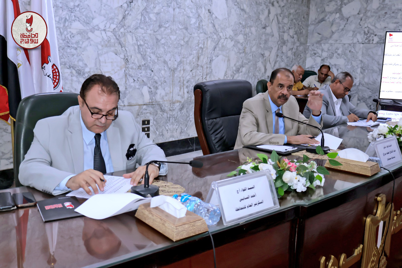 وأناب المحافظ اللواء يسري عبد المنعم السكرتير العام الجديد للمحافظة لعقد اجتماع لمناقشة أحد العروض التابعة لشركات تصنيع الأخشاب من ألياف أشجار الموز لتوسيع استثماراتها في محافظة سوهاج وهي شركة مصرية استرالية ، وقد حضر الاجتماع كلا من أ.د أحمد عزيز رئيس جامعة سوهاج ، والمحاسب كمال شلبي السكرتير العام المساعد، والدكتور عمر الحادي المنسق العلمي للمحافظة، وادوارد بيرت رئيس مجلس إدارة الشركة، وفينس ريجانو عضو بمجلس إدارة الشركة، ورامي عازر وهبة نايل مديري التنفيذ بالشركة ، وعصام رمضان مدير مصنع الشركة بالمنطقة الصناعية بالكوثر، وعدد من كبار تجار ومزارعي الموز بالمحافظة.