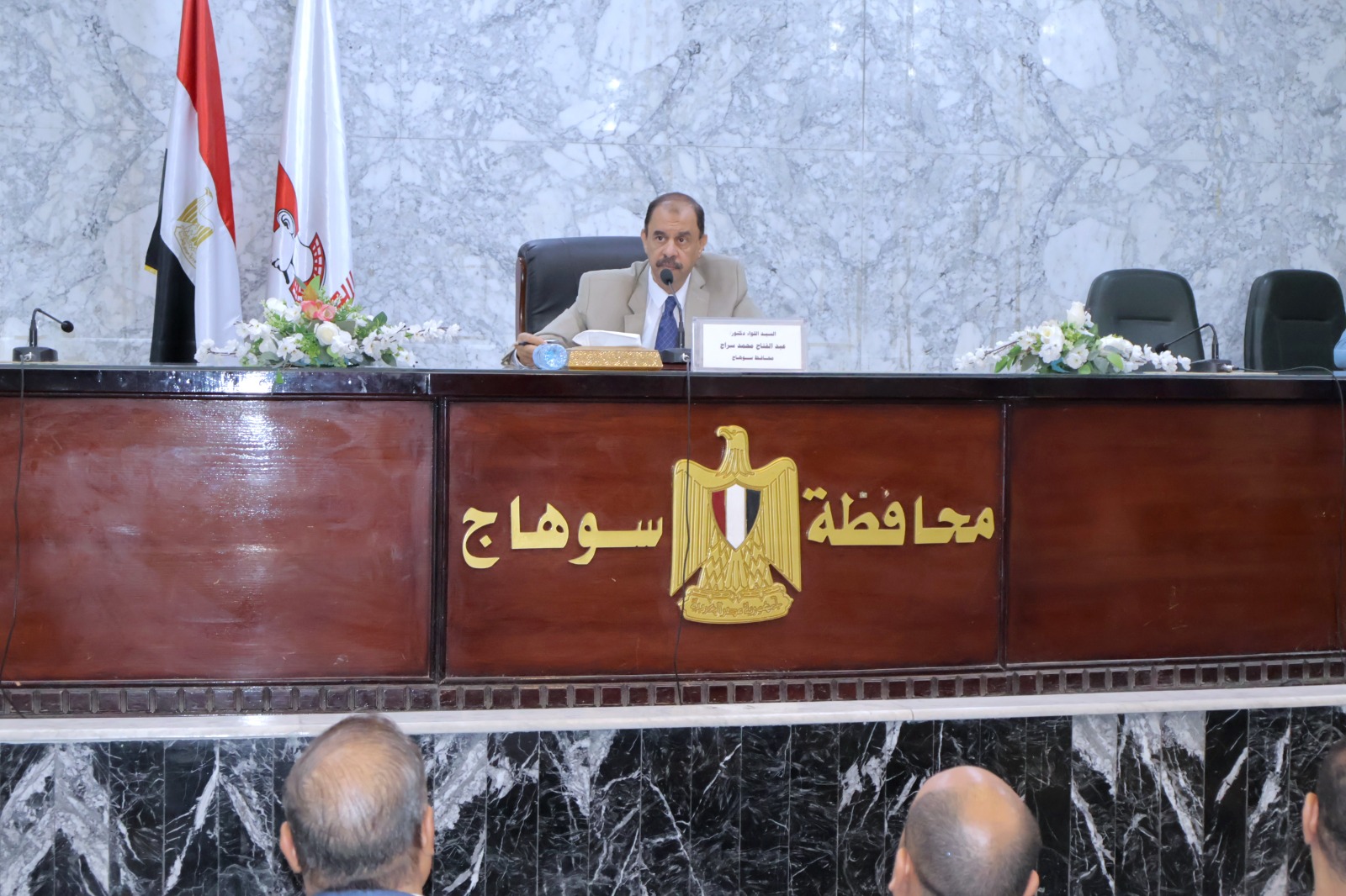 قال الدكتور أيمن عبدالمنعم محافظ سوهاج إن المهندس شريف إسماعيل رئيس مجلس الوزراء ترأس السبت اجتماعاً موسعاً مع المحافظين بحضور وزراء الدفاع والإنتاج الحربى، والداخلية، والأوقاف، والإسكان، والبيئة، والعدل، والرى، والآثار، والسياحة، والتنمية المحلية، والزراعة، ورئيس هيئة الرقابة الإدارية.