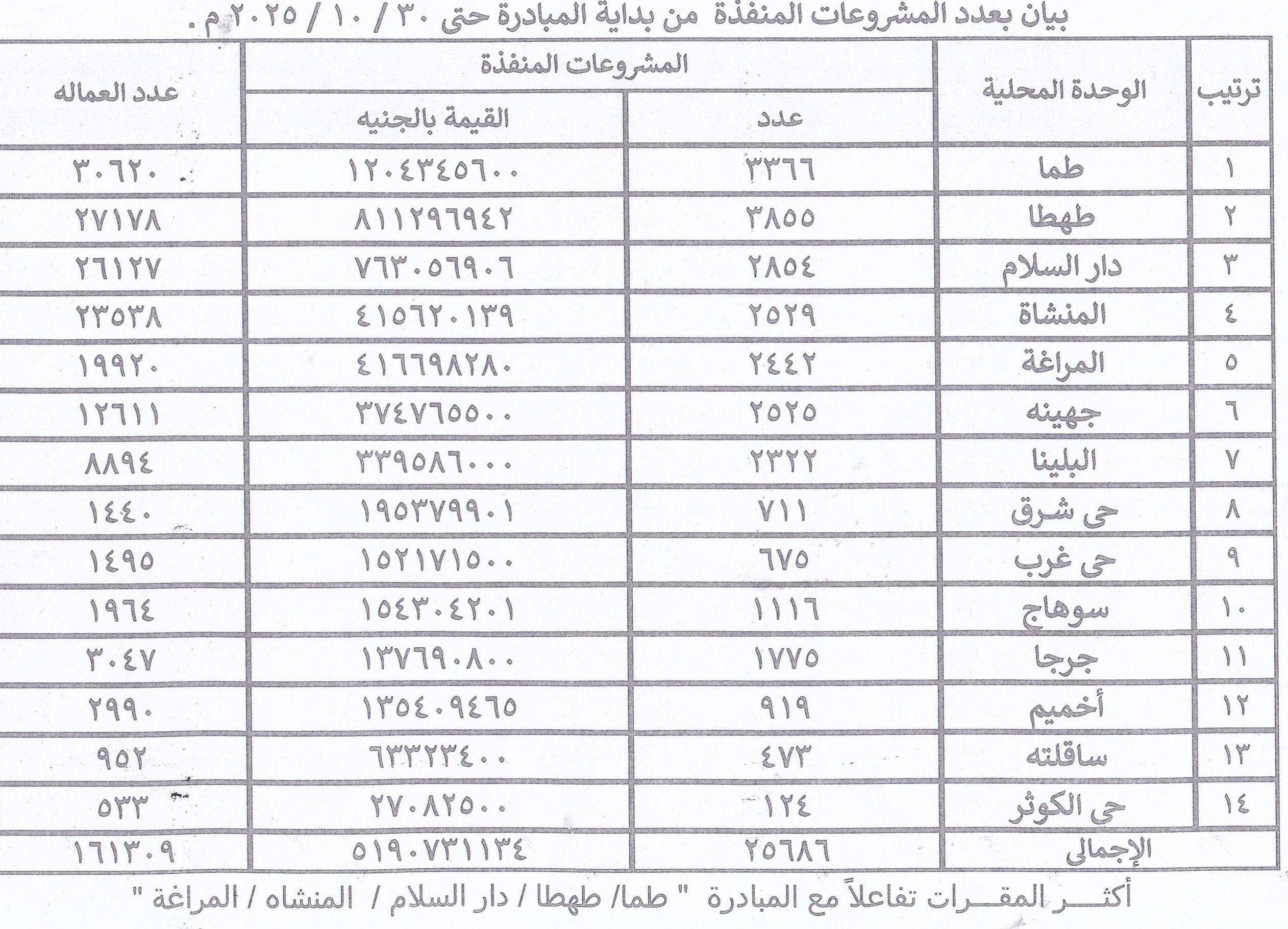 بيان بعدد المشروعات المنفذه / تحت الدراسه / المرفوضه :